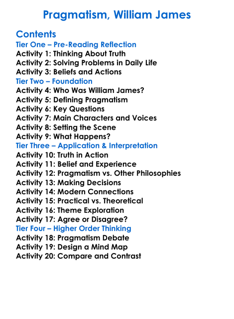 Pragmatism William James Worksheet Activity Booklet