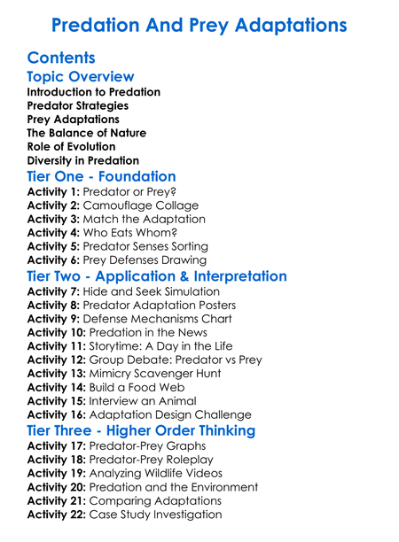 Predation And Prey Adaptations Worksheet Activity Booklet