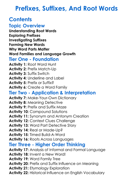 Prefixes Suffixes And Root Words Worksheet Activity Booklet