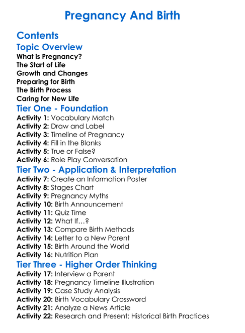 Pregnancy And Birth Worksheet Activity Booklet
