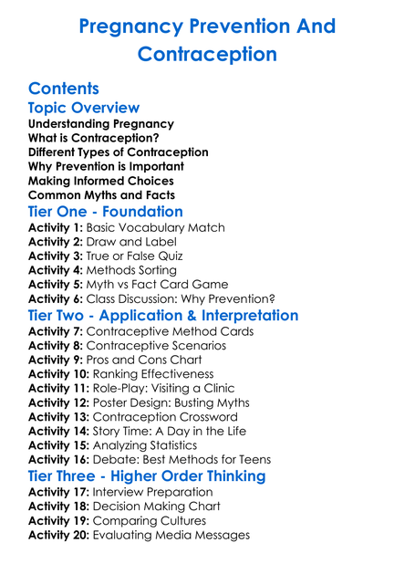 Pregnancy Prevention And Contraception Worksheet Activity Booklet