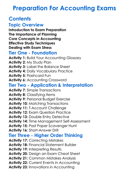 Preparation For Accounting Exams Worksheet Activity Booklet