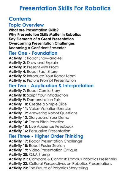 Presentation Skills For Robotics Worksheet Activity Booklet