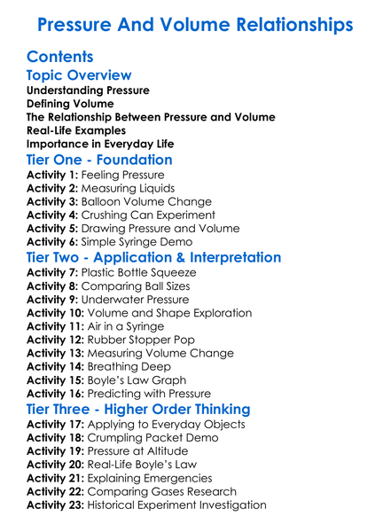 Pressure And Volume Relationships Worksheet Activity Booklet
