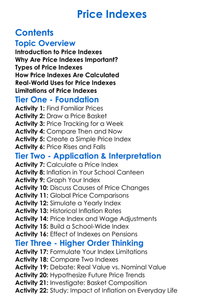 Price Indexes Worksheet Activity Booklet