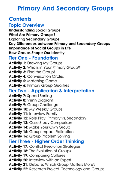 Primary And Secondary Groups Worksheet Activity Booklet