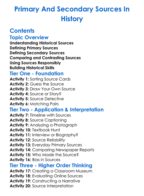 Primary And Secondary Sources In History Worksheet Activity Booklet