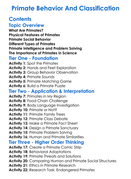 Primate Behavior And Classification Worksheet Activity Booklet