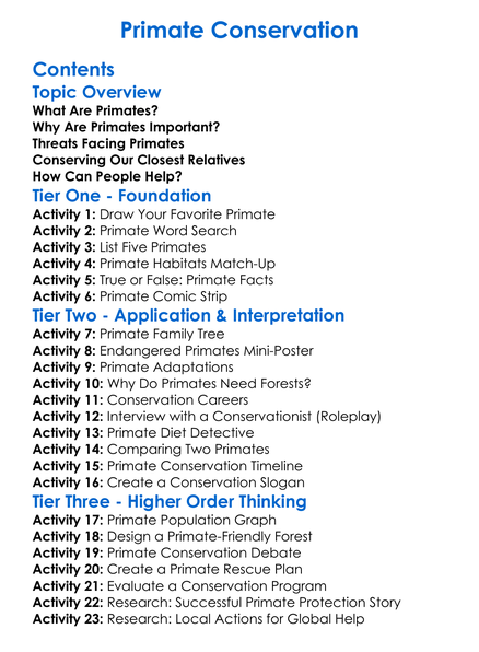 Primate Conservation Worksheet Activity Booklet