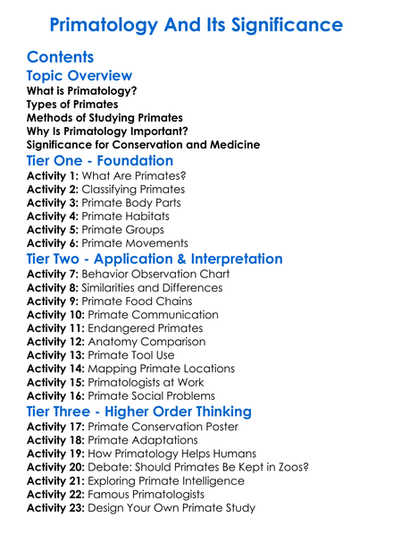 Primatology And Its Significance Worksheet Activity Booklet