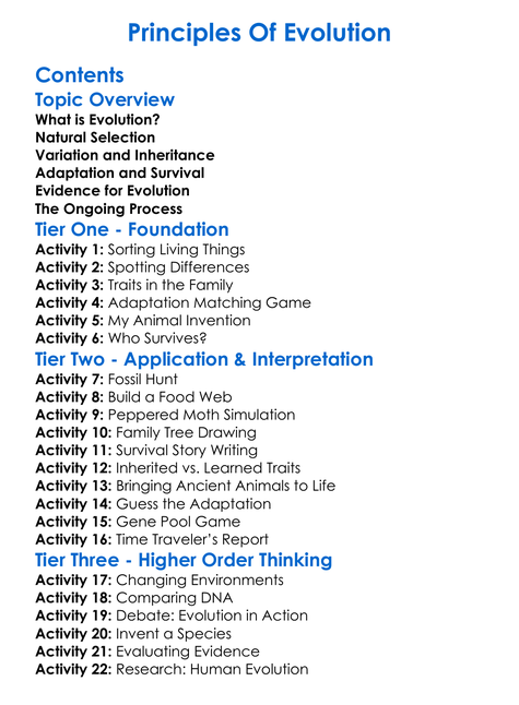 Principles Of Evolution Worksheet Activity Booklet