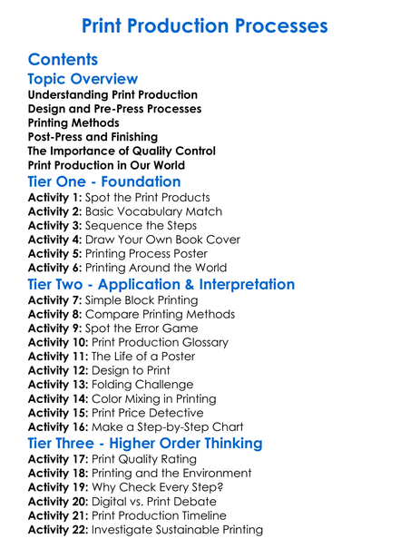 Print Production Processes Worksheet Activity Booklet
