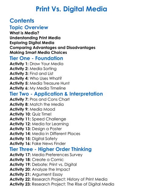Print Vs Digital Media Worksheet Activity Booklet