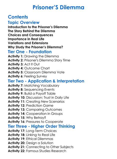Prisoners Dilemma Worksheet Activity Booklet