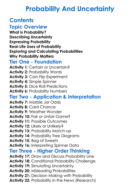 Probability And Uncertainty Worksheet Activity Booklet