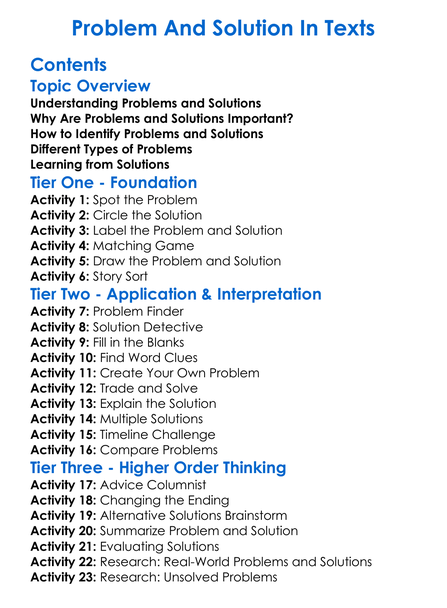 Problem And Solution In Texts Worksheet Activity Booklet