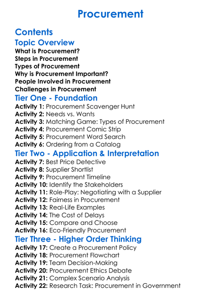 Procurement Worksheet Activity Booklet