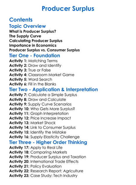 Producer Surplus Worksheet Activity Booklet