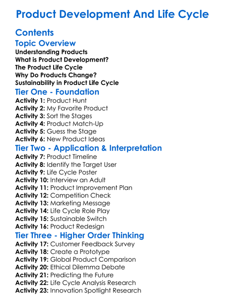Product Development And Life Cycle Worksheet Activity Booklet