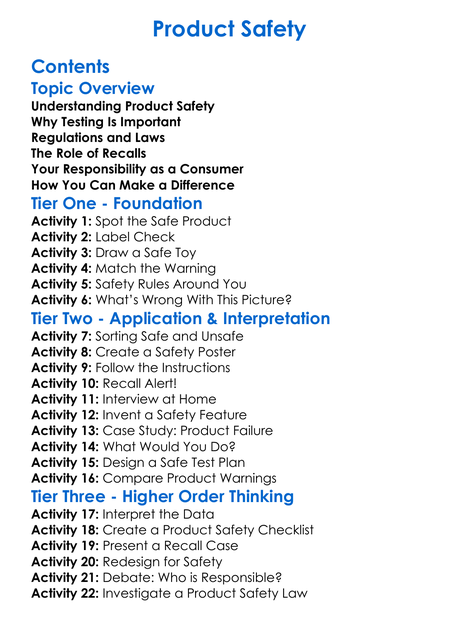 Product Safety Worksheet Activity Booklet