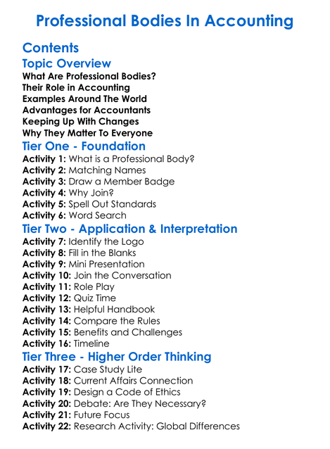Professional Bodies In Accounting Worksheet Activity Booklet