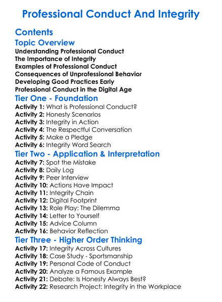 Professional Conduct And Integrity Worksheet Activity Booklet