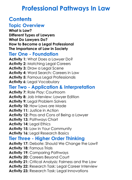 Professional Pathways In Law Worksheet Activity Booklet