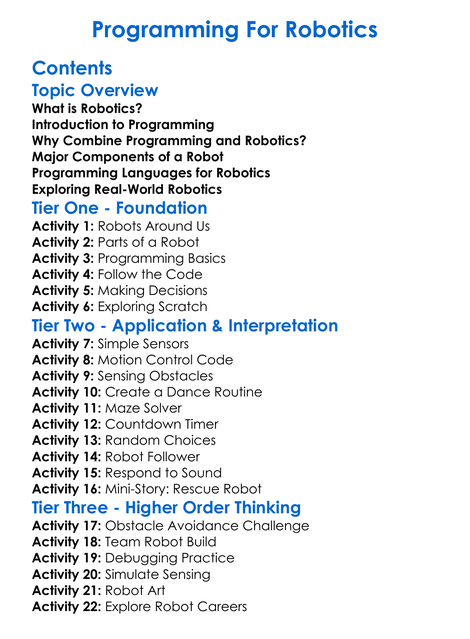 Programming For Robotics Worksheet Activity Booklet