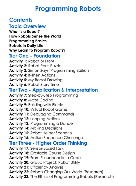 Programming Robots Worksheet Activity Booklet