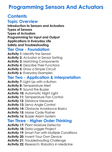 Programming Sensors And Actuators Worksheet Activity Booklet