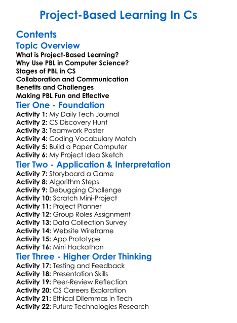 Project-Based Learning In Cs Worksheet Activity Booklet