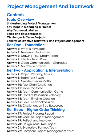 Project Management And Teamwork Worksheet Activity Booklet
