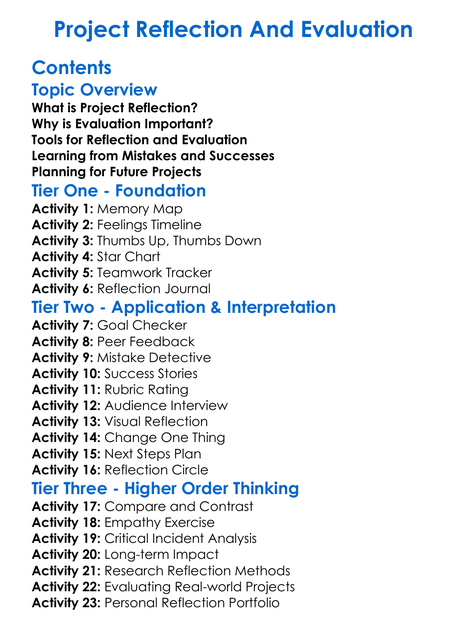Project Reflection And Evaluation Worksheet Activity Booklet