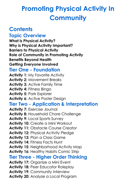Promoting Physical Activity In Community Worksheet Activity Booklet