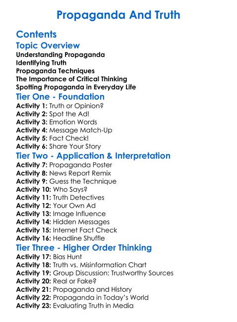 Propaganda And Truth Worksheet Activity Booklet