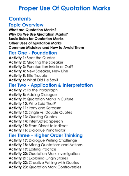 Proper Use Of Quotation Marks Worksheet Activity Booklet
