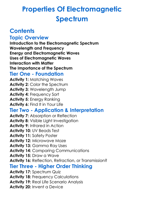 Properties Of Electromagnetic Spectrum Worksheet Activity Booklet