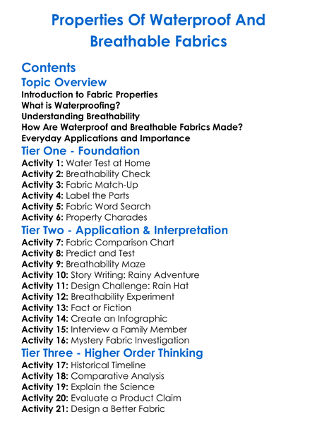 Properties Of Waterproof And Breathable Fabrics Worksheet Activity Booklet