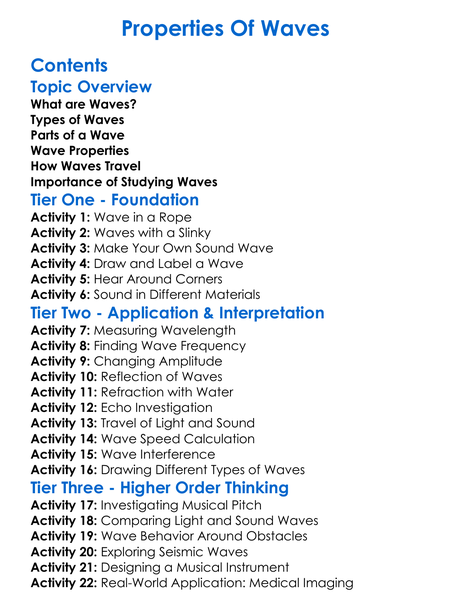 Properties Of Waves Worksheet Activity Booklet