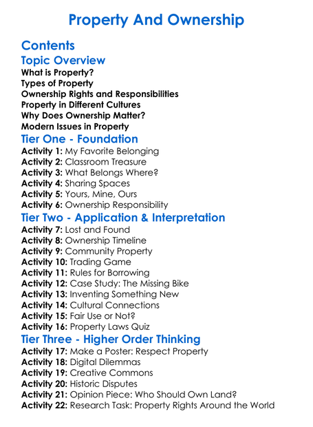 Property And Ownership Worksheet Activity Booklet