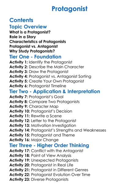 Protagonist Worksheet Activity Booklet