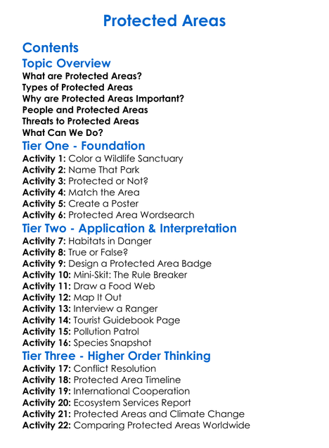 Protected Areas Worksheet Activity Booklet