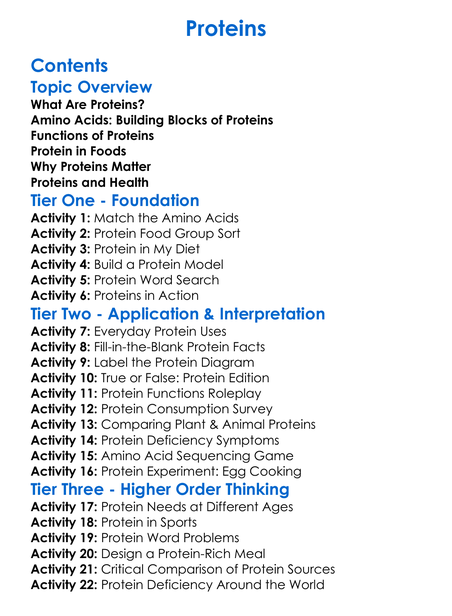 Proteins Worksheet Activity Booklet