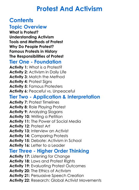 Protest And Activism Worksheet Activity Booklet