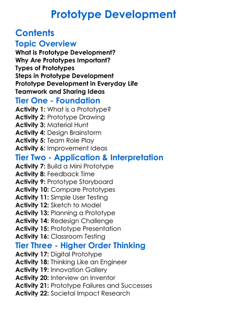 Prototype Development Worksheet Activity Booklet