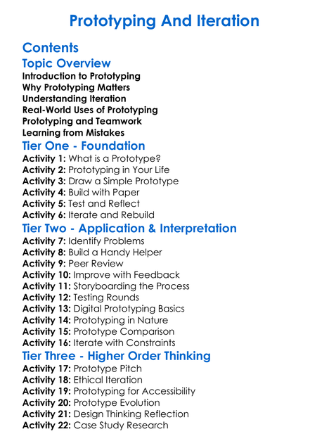 Prototyping And Iteration Worksheet Activity Booklet