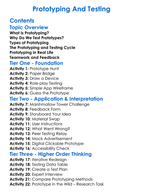 Prototyping And Testing Worksheet Activity Booklet