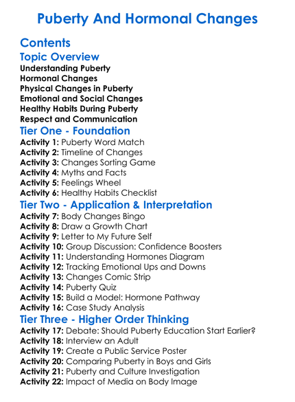 Puberty And Hormonal Changes Worksheet Activity Booklet