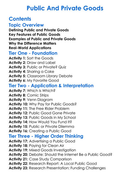 Public And Private Goods Worksheet Activity Booklet