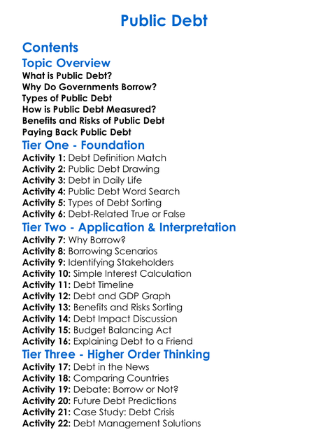 Public Debt Worksheet Activity Booklet